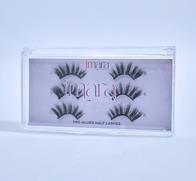 Imara Pre-Glued Half Lashes deliver effortless press on lashes that last up to 24 hours. Lightweight and ready to wear — just peel, place, and press for instant glam in seconds.