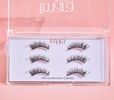 Imara Pre-Glued Half Lashes deliver effortless press on lashes that last up to 24 hours. Lightweight and ready to wear — just peel, place, and press for instant glam in seconds.