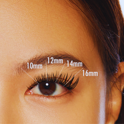 • Four lines of pre-glued wispy shape lashes in 10mm, 12mm, 14mm, and 16mm